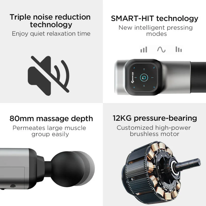 ماساژ گان Booster مدل m2-A این ماساژور یکی از برترین ماساژور های تفنگی بازار از بهترین برند تولید کننده آن یعنی شرکت بوستر میباشد با باتری درونی 12 ولت و موتور براشلس با حداکثر سرعت 3300rpm تجربه ای لذت بخش از ماساژ را برای شما فراهم میکند دارای چیپست درونی و هوش مصنوعی برای تجربه ماساژ متناسب با فشار وارد شده به گیربکس دارای 8 حالت کاری مختلف و گیربکس 4 سرعته که دارای 6 سری متفاوت میباشد